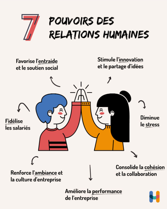 Infographie « 7 pouvoirs des relations humaines » – Horizon Santé Travail