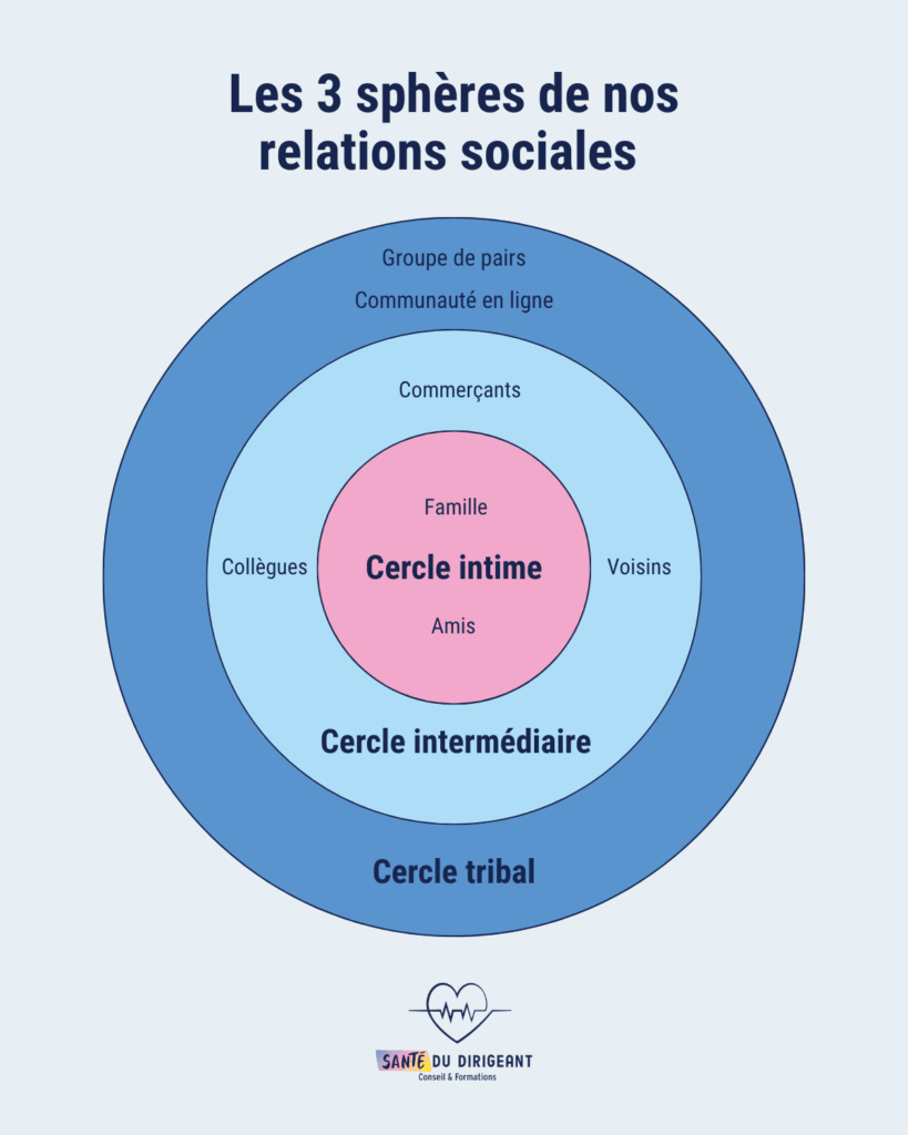Infographie « Les 3 sphères de nos relations sociales » – Santé du Dirigeant